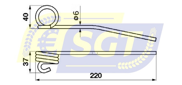Запчастини для жатки зернозбирального комбайна Claas. Пружина мотовила L=220, код 800021. Діаметр проволоки становить 6 мм. Підходить для багатьох старих моделей Claas, таких як EUROPA, COMET, COSMOS, COMPACT, MERCUR, MATADOR, CONSUL, PROTECTOR, MERCATOR, SENATOR, DOMINATOR 68, 76, 80, 86, 96, 105, 106 та інші.