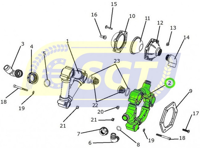 Комплектуючі для обприскувача. Запасна частина до насоса Tolveri PU-3/140. Передній нагнітальний колектор насоса (комплектний) - призначений для створення тиску і перекачування потоку рідини до розподільника. Саме на ньому монтуються випускне коліно d25 і повітряна камера з діафрагмою (повітровідвідник, груша).